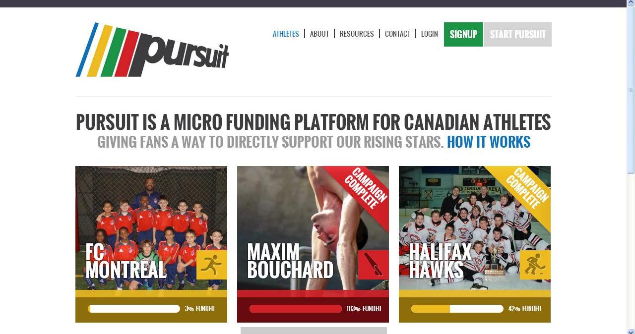 Pursuit. (n.d.). Retrieved February 27, 2013, from Pursuit is a micro funding platform for canadian athletes: https://pursu.it/